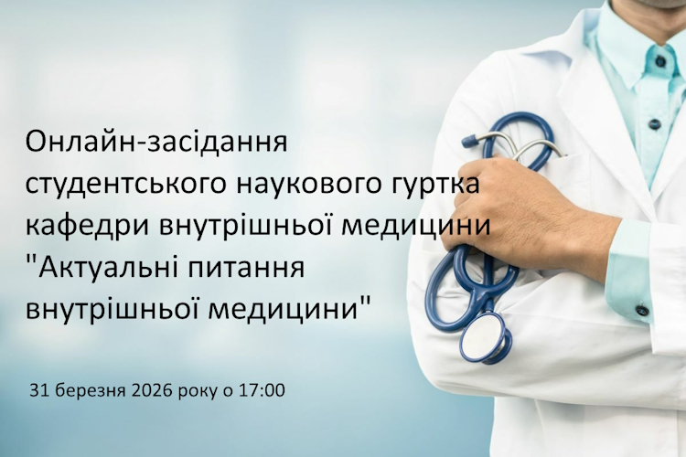 31 березня 2026 року о 17:00 відбудеться онлайн-засідання студентського наукового гуртка кафедри внутрішньої медицини.